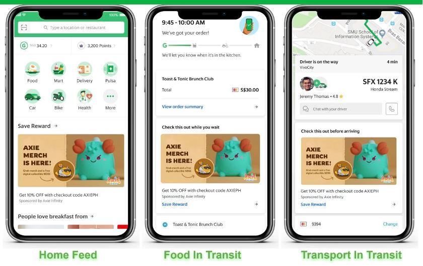 更强势的动作是,Axie Infinity与菲律宾打车软件Grab合作,推出用户积分奖励计划,以此从Web2主流应用程序打开分销渠道。在Grab App里,用户可以访问Axie的在线商店购买周边。
