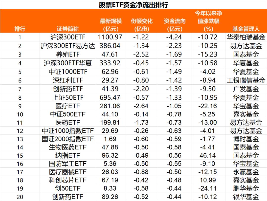 沪深300ETF、中证1000ETF、医药ETF为“失血”主力