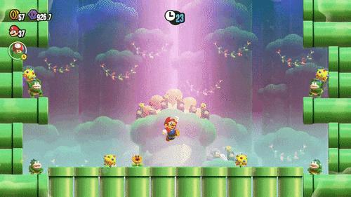 在《惊奇》里,任天堂下了不少工夫给玩家制造“惊奇”。除了精彩的2D关卡设计与多样的道具之外,让玩家最为惊奇的就是30多年都没啥台词的马力欧系列居然出现了一个/群能说话的角色。这角色不开口则已,一开口还是个话唠,有一种要把系列30年没说的话一口气补完的气势。