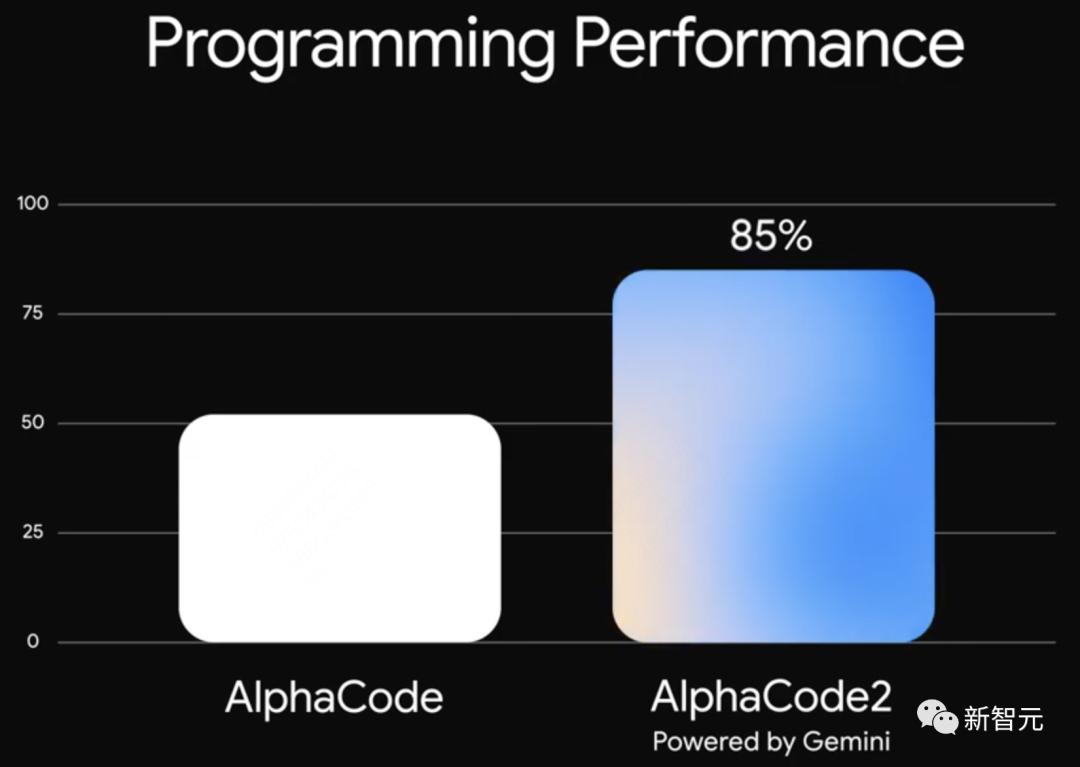 其中,AlphaCode 2编程的性能超过了85%的人类程序员,相比之下,AlphaCode只超过了约50%的程序员。