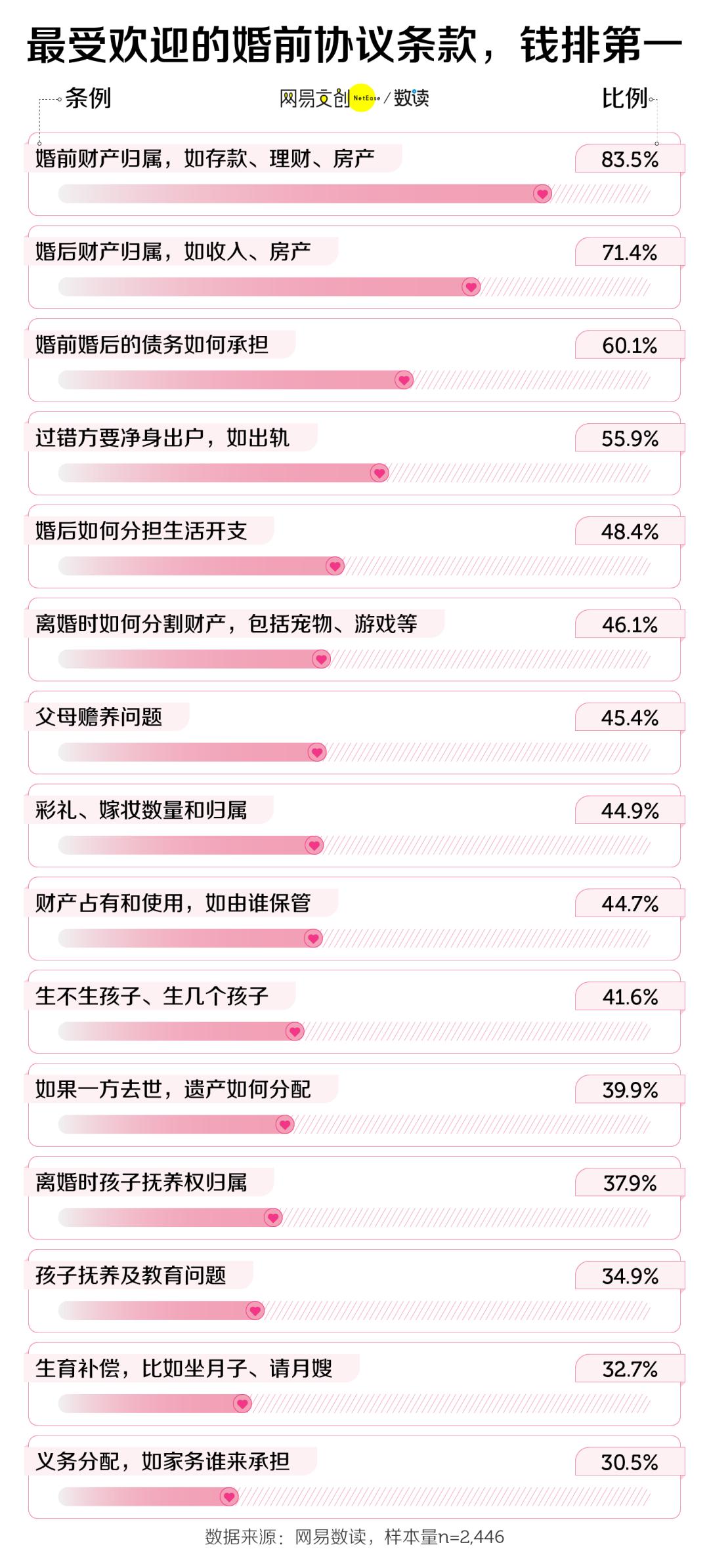 在“最受欢迎的婚前协议条款”统计中,不出所料,钱一定会是婚前协议的主角。