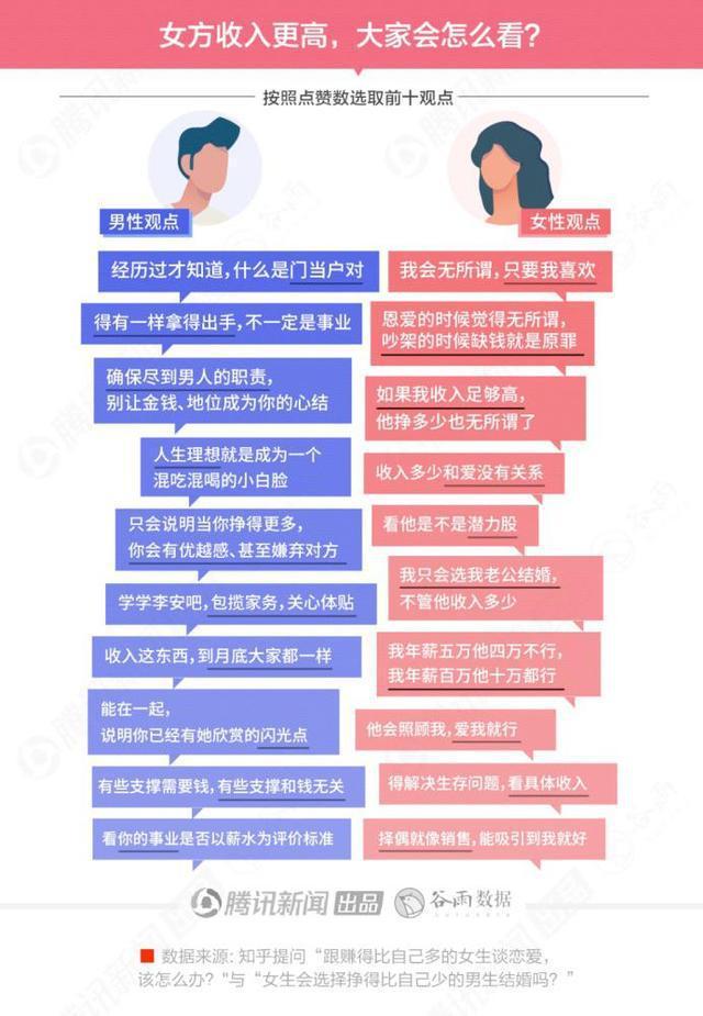 腾讯新闻就曾做过一项关于“女方收入更高,大家会怎么看?”的调查。
