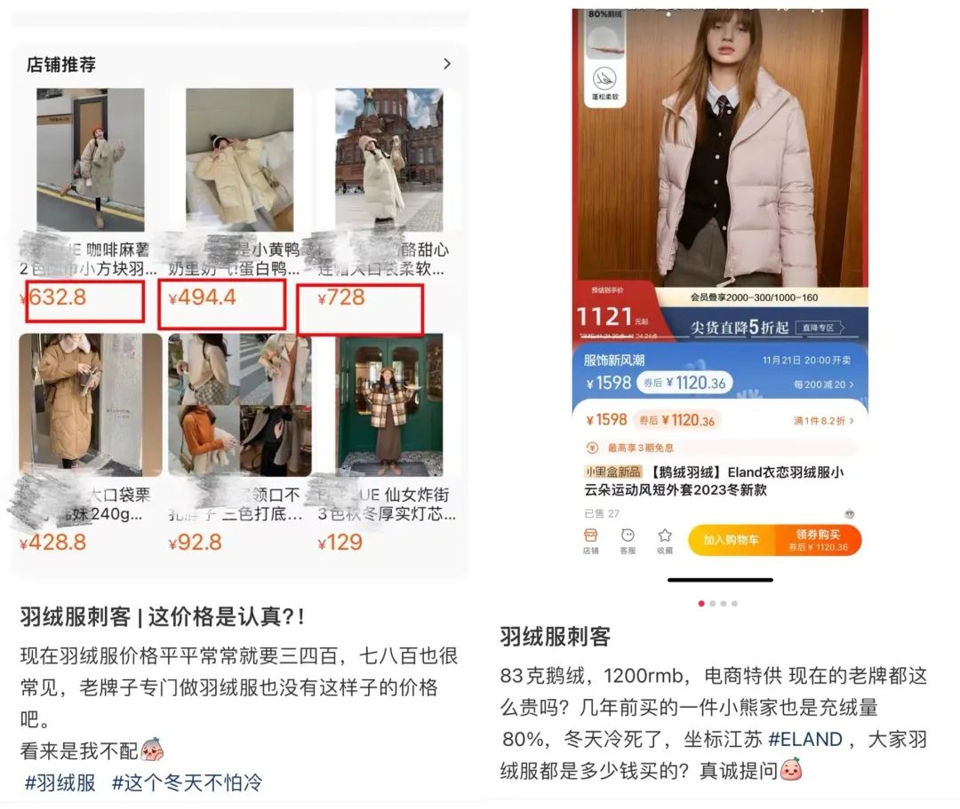 虽然羽绒服售价走高的原因不乏原材料价格上涨等因素,但确实有一些品牌打着“对标国际高端大牌”的旗号,跟风营销、定位高端,企图收割消费者钱包。