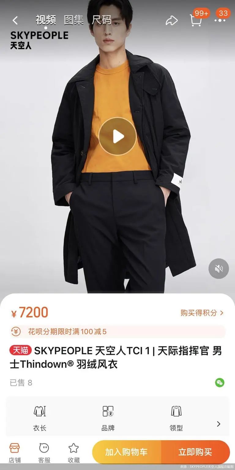 11月22日,#国产羽绒服卖到7000元#话题冲上微博热搜第一。这款羽绒服来自猿辅导母公司旗下的SKYPEOPLE,这个品牌的羽绒服价位大概在2800元-5000元,其中售价最高的是一款卖到7200元的羽绒风衣。