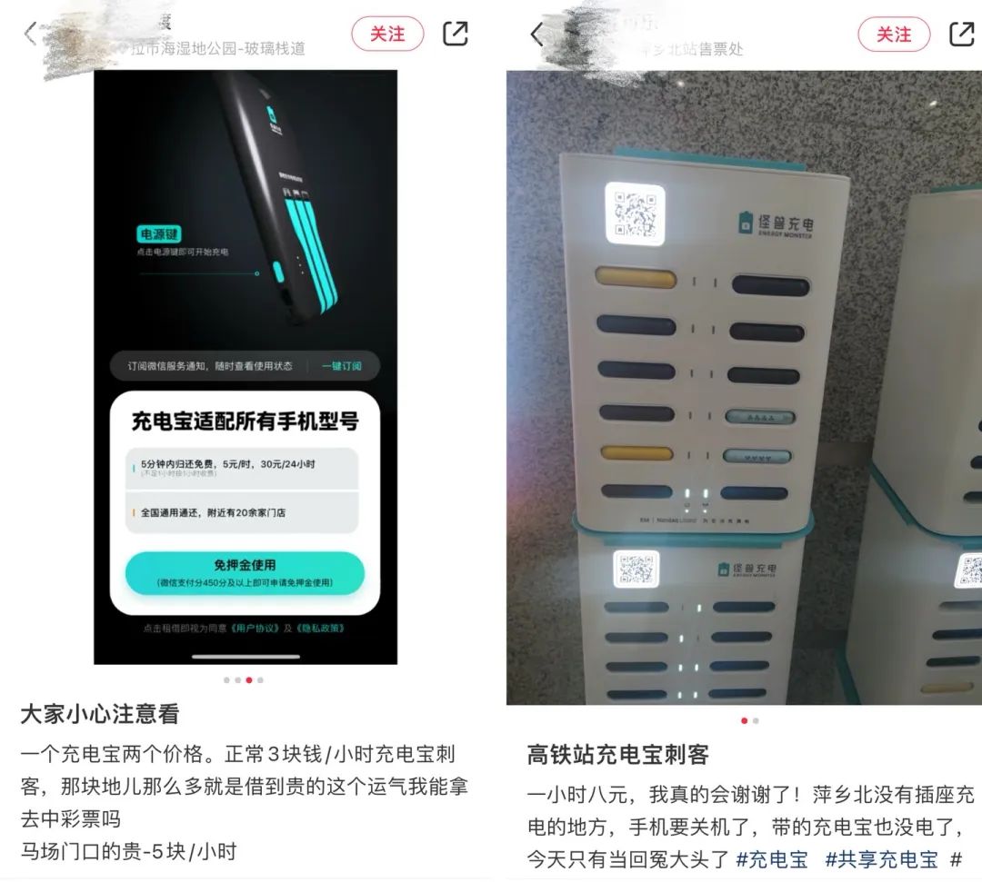 有网友称,一些景区附近的共享充电宝8元/小时,稍微充会电小十块钱就没了。回想共享充电宝刚普及时,起步价基本每小时1元或者1.5元,不成想几年后价格竟翻了4-8倍。