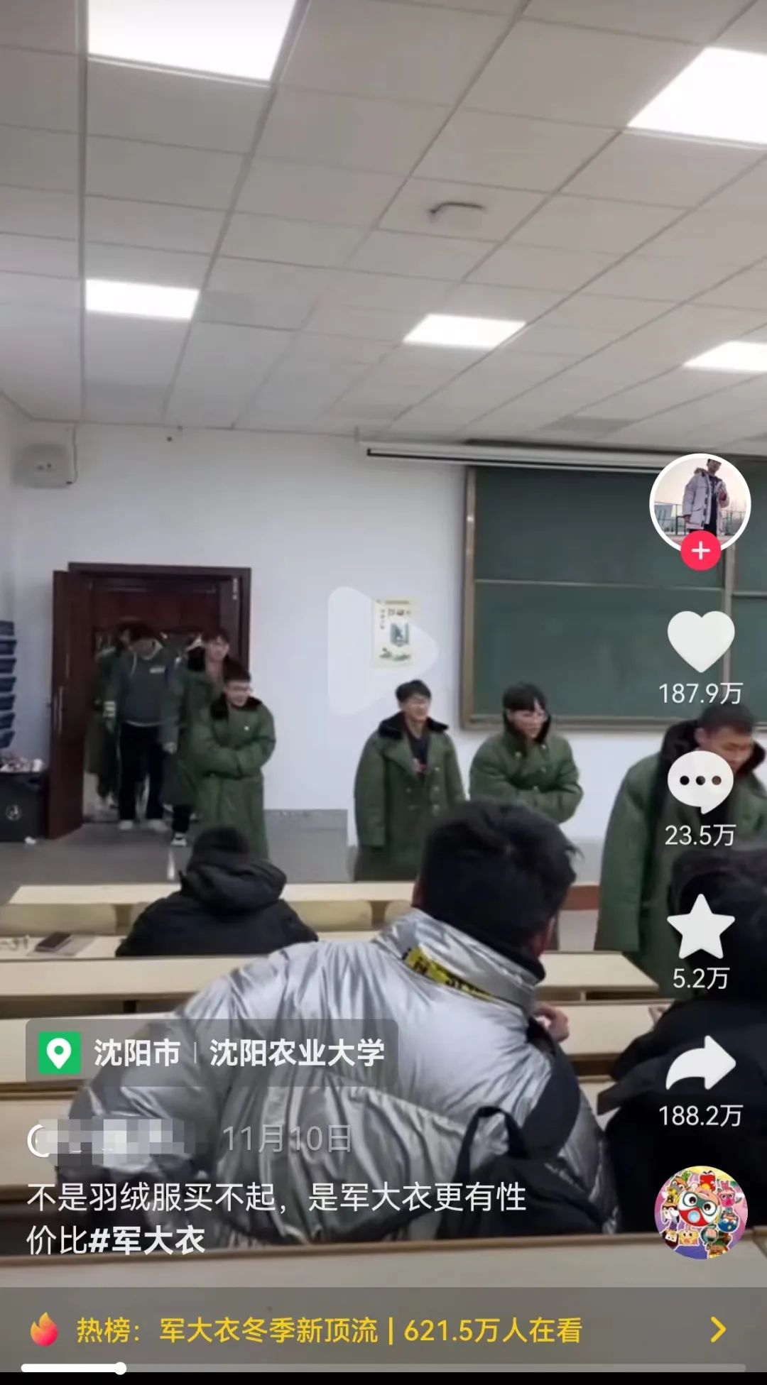 面对羽绒服的“高攀不起”,00后们开始出手“整顿市场”,保暖并且价格更实惠的冲锋衣、军大衣、花棉袄都成为新晋顶流。网友自嘲:“不是羽绒服买不起,是军大衣更有性价比”、“冲锋衣抗寒一年还能穿三季”、“只要你不尴尬,冷的就是别人”。