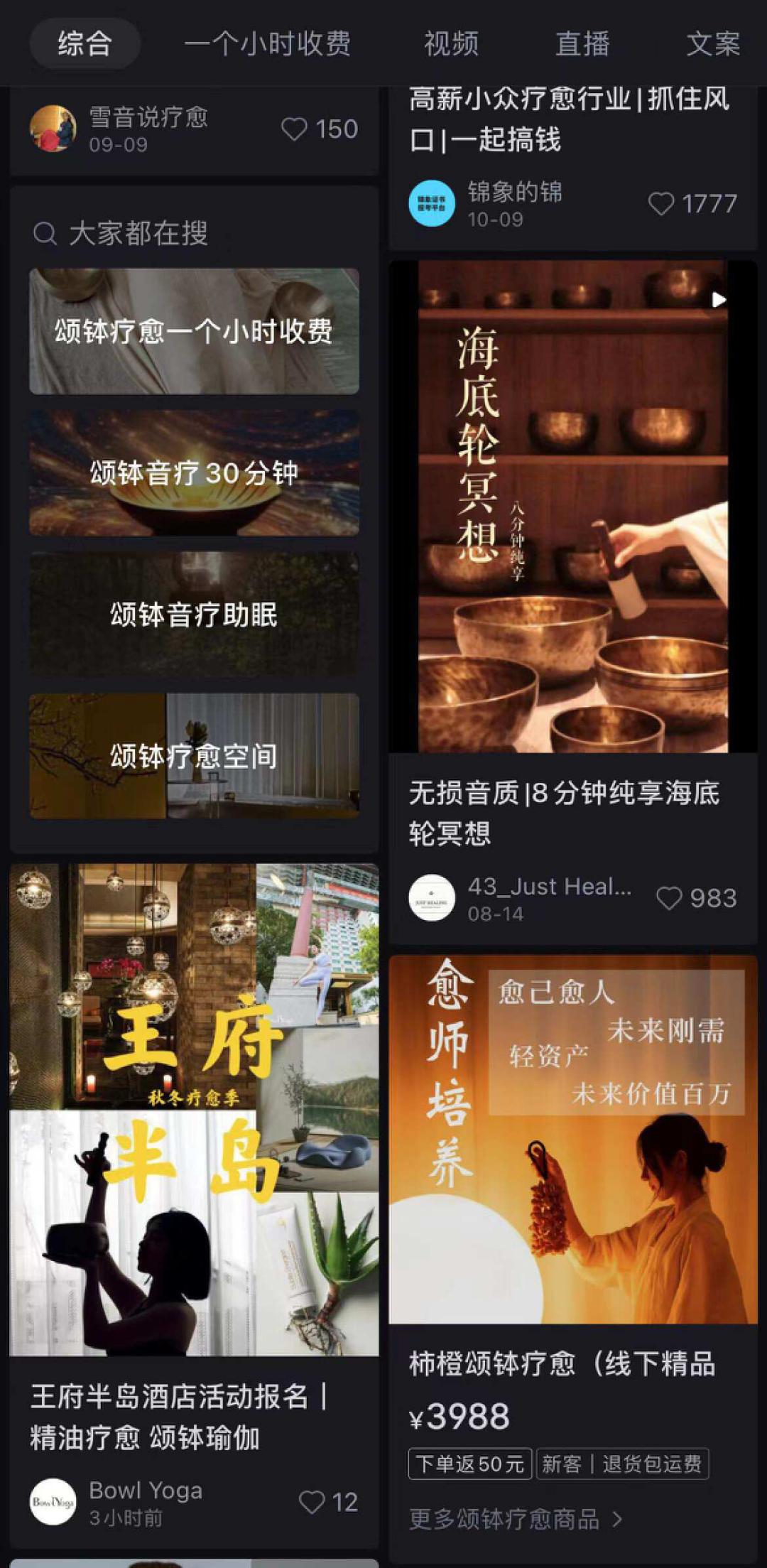 活动中,组织者也会给大家拍摄现场照片。体验+拍照记录的方式,也让参与者有了更多在社交平台分享打卡的机会,也让这项活动看起来更加高级优雅。在小红书搜索颂钵疗愈,可以看到颂钵疗愈活动的分享以及颂钵疗愈师的培训。单看照片中的暖光、手碟、颂钵、蜡烛也足矣让人感受到温暖和平静。