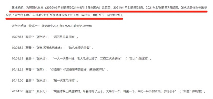案涉期间,为照顾女儿(2020年3月15日至2021年9月15日在国内)等原因,2021年1月23日至28日、2021年2月6日至7日期间,张某居住在美诺华全资子公司名下房产,与姚某宁波住所在地理位置上处于同一电梯位,两住所位于隔壁和对门。