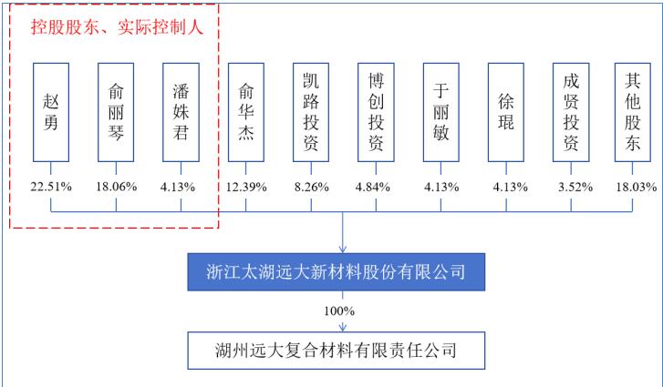 截至招股书签署日,赵勇、俞丽琴、潘姝君三人分别持有太湖远大22.51%、18.06%、4.13%股权,为太湖远大实际控制人。