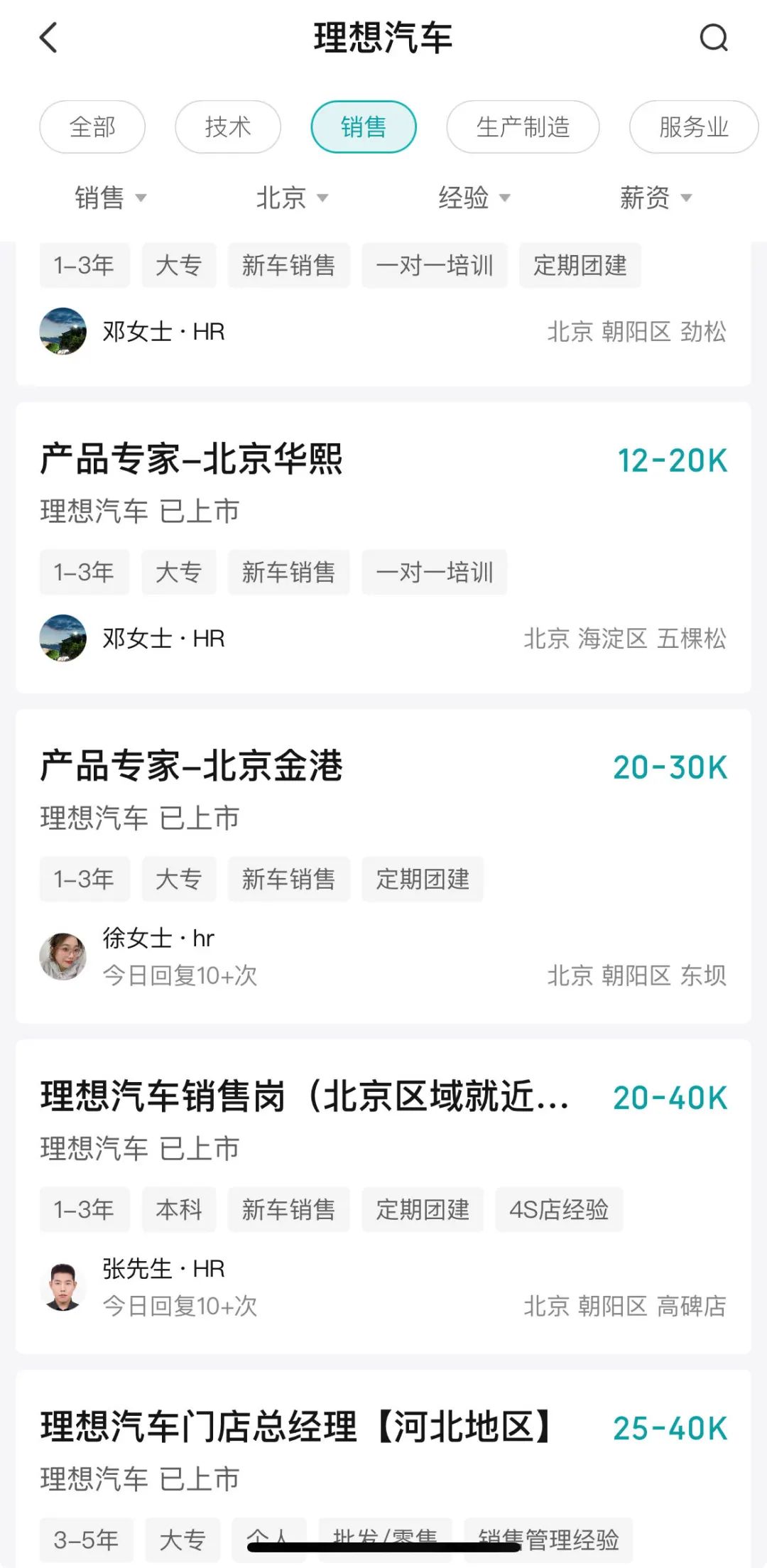 选择北京的原因也很简单,因为北京这种一线城市,新能源汽车保有量大,厂商的门店也多,薪资也高,能吸引打工人。