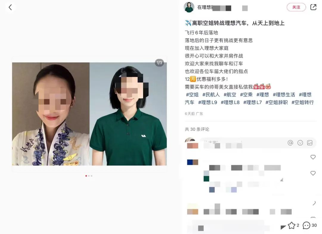 这几天,关于空姐转行卖新能源车的话题挺火,在小红书上有不少自称是空姐的博主分享了自己转行的经历。
