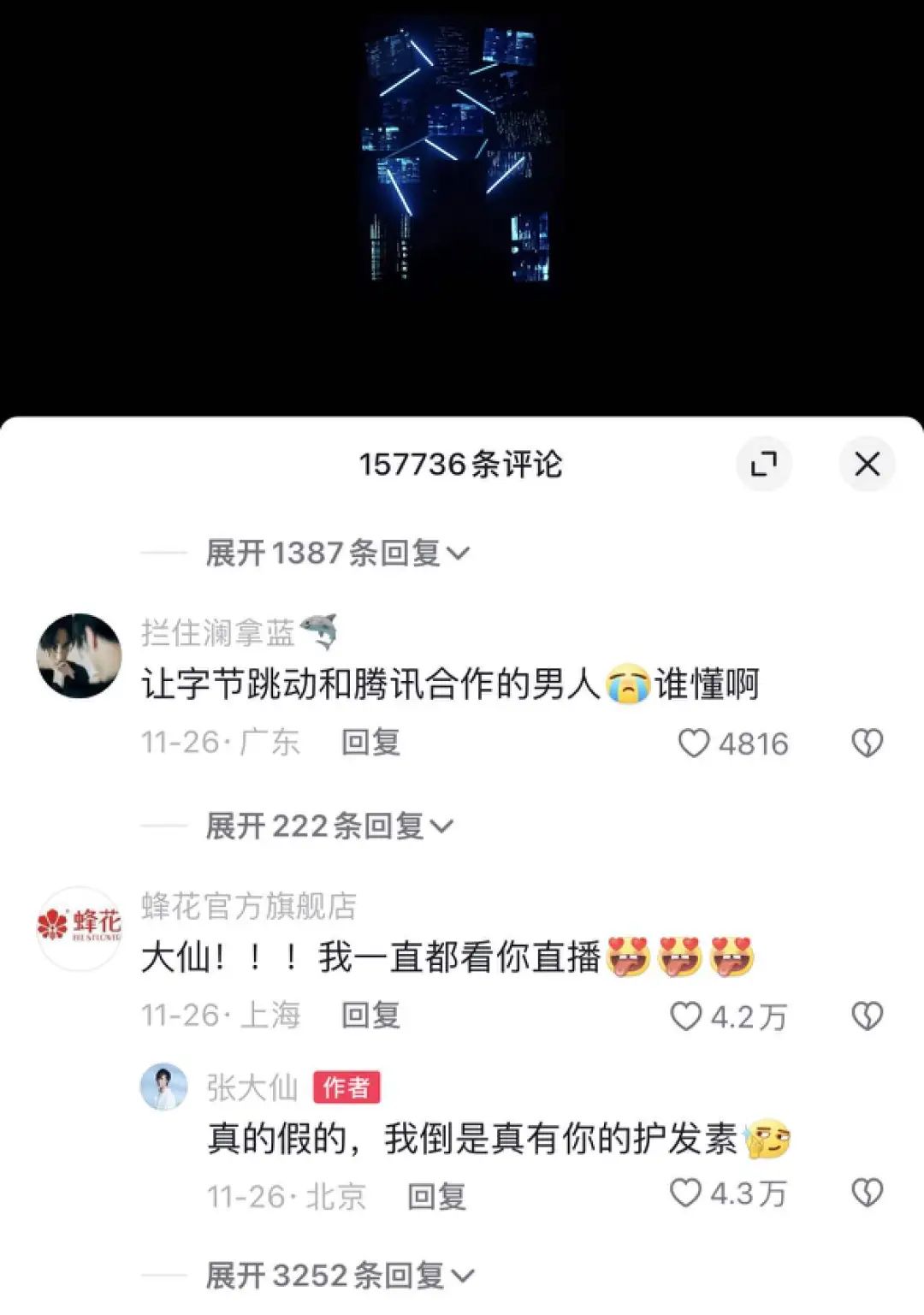 而DataEye研究院发现,在张大仙官宣抖音直播首秀之后,不少国货品牌都在评论区互动,想办法在张大仙首播期间瓜分一点流量。