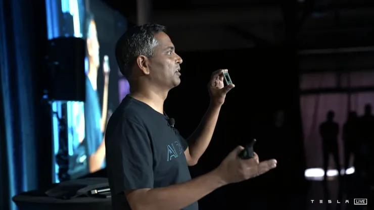 Venkataramanan被业内所熟知还是在第一次在特斯拉的亮相,2021年的AI Day上,发布Dojo第一代超级计算机时,正是他拿着第一代的Dojo D1 芯片走进了会场。