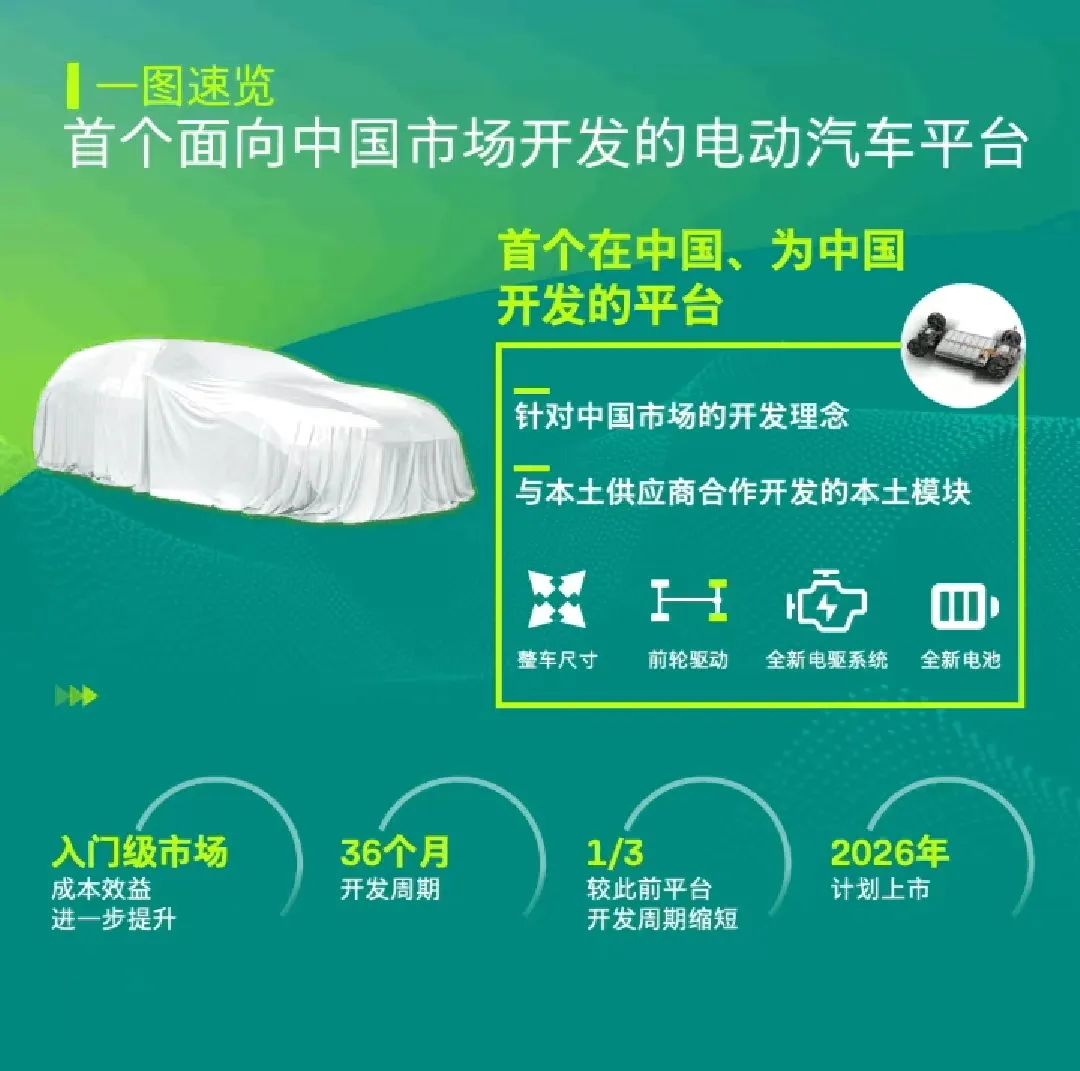 新平台的开发将由位于安徽的大众汽车(中国)科技有限公司负责;开发周期36个月,较此前的平台开发周期缩短了约三分之一;推出的四款产品将投放到不同的合资公司中进行生产、销售。
