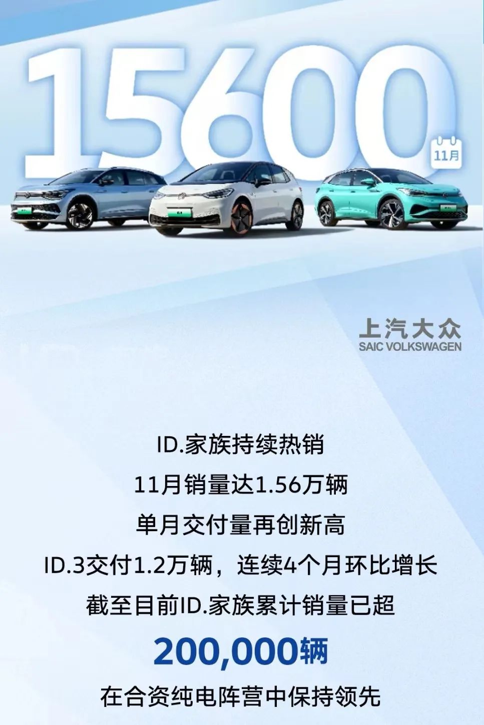 12月的第一天,上汽大众再次成了合资车企中为数不多率先公布新能源车销量的一个。