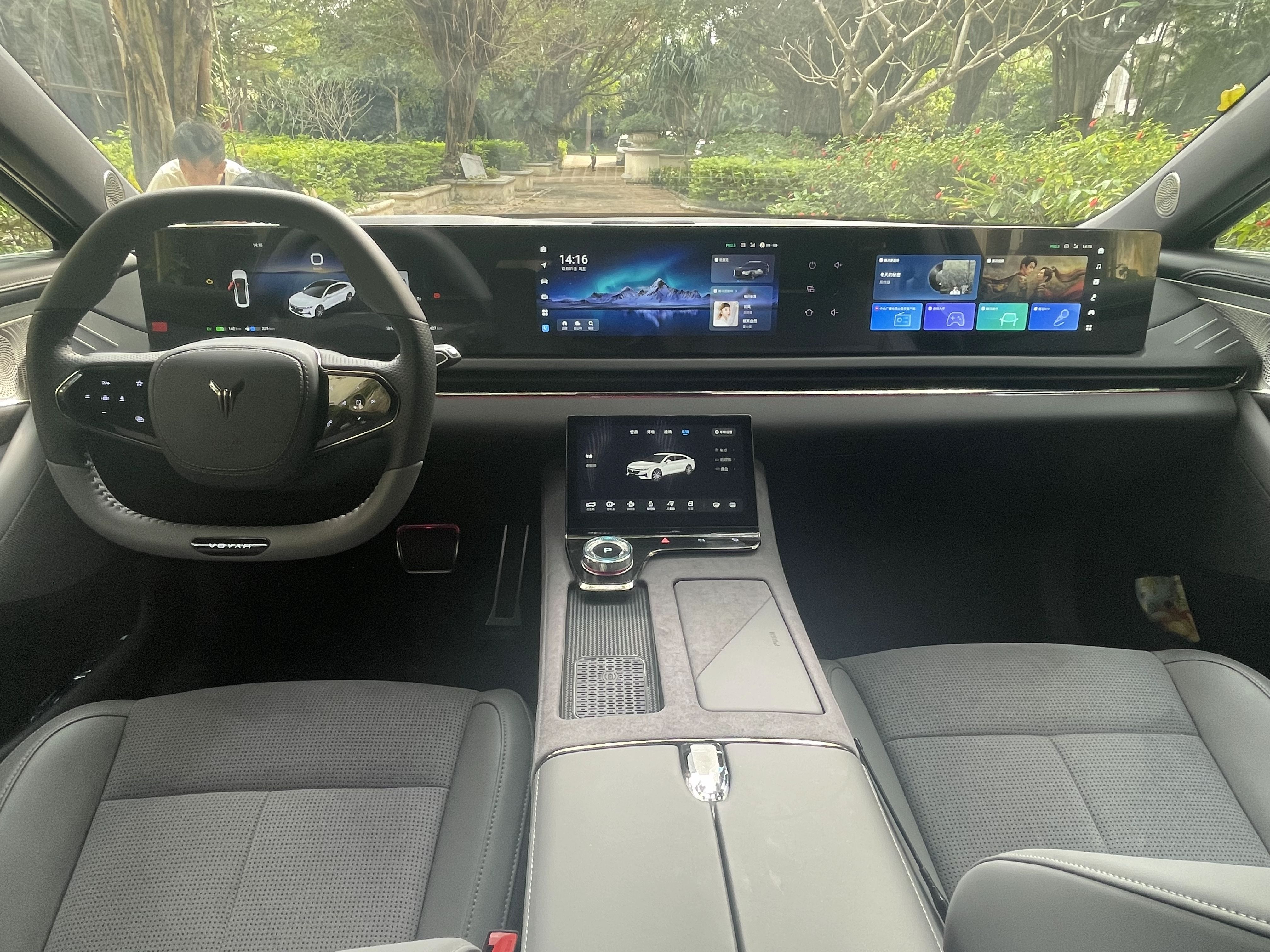 来到车辆内部,岚图追光PHEV采用无界贯通式三连屏+中控屏设计,前后四座均具备按摩、通风、加热功能,副驾座椅支持一键舒躺模式,后排带腿托及电动靠背调节功能,并在后排座椅大扶手上配备了 7寸触摸显示屏,可控制后排及副驾座椅调节和空调设置,实现更加舒适的乘坐体验。