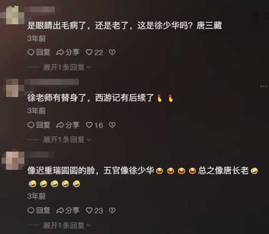 在这条视频中,田向阳看到“妖怪”后,先是眉头紧锁露出惊恐的表情,随后连连后退,一边摆手一边低头遮掩,和剧中的“唐僧”如出一辙,让路人和网友瞬间“穿越”到童年记忆中的86版《西游记》。