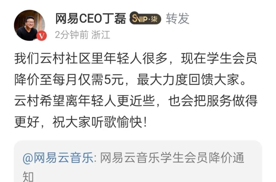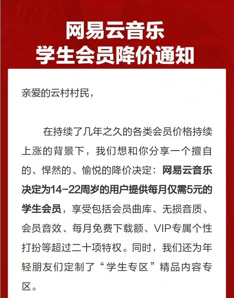 就在当天,网易云音乐发动了一场“突袭式”的价格战:学生会员降价至5元/月。