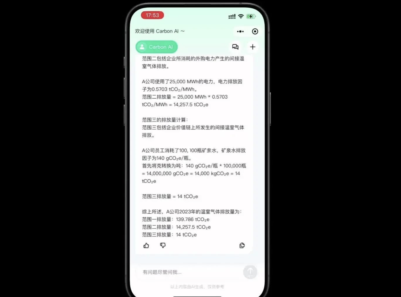 同时,Carbon AI作为碳云小助手,能在碳云中完成用户指令、建立模型、分析碳数据;未来将基于大模型和行业数据智能建模,提供更加个性化的碳数据分析服务。