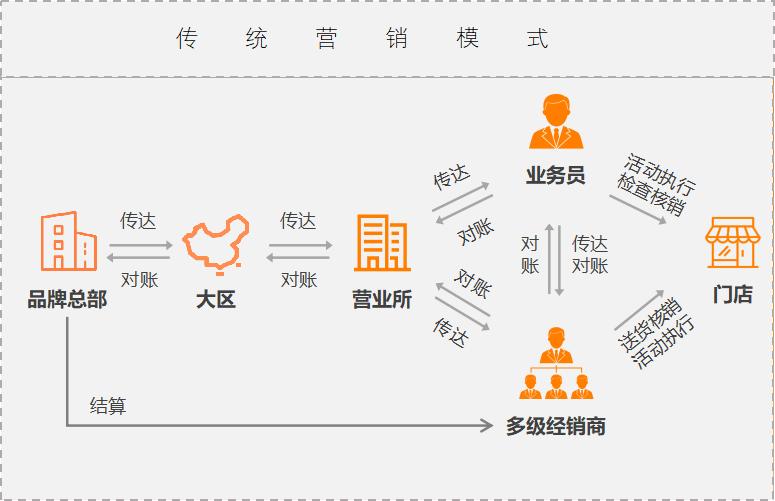 以前,品牌建立了复杂的深度分销体系,涉及信息流、商流、物流、资金流的一整套渠道流通路径。然而,现在大多数品牌都面临同一个难题:如何在庞杂的分销网络中实现与每个接触点的信息实时共享,最终了解产品流向终端的全过程。