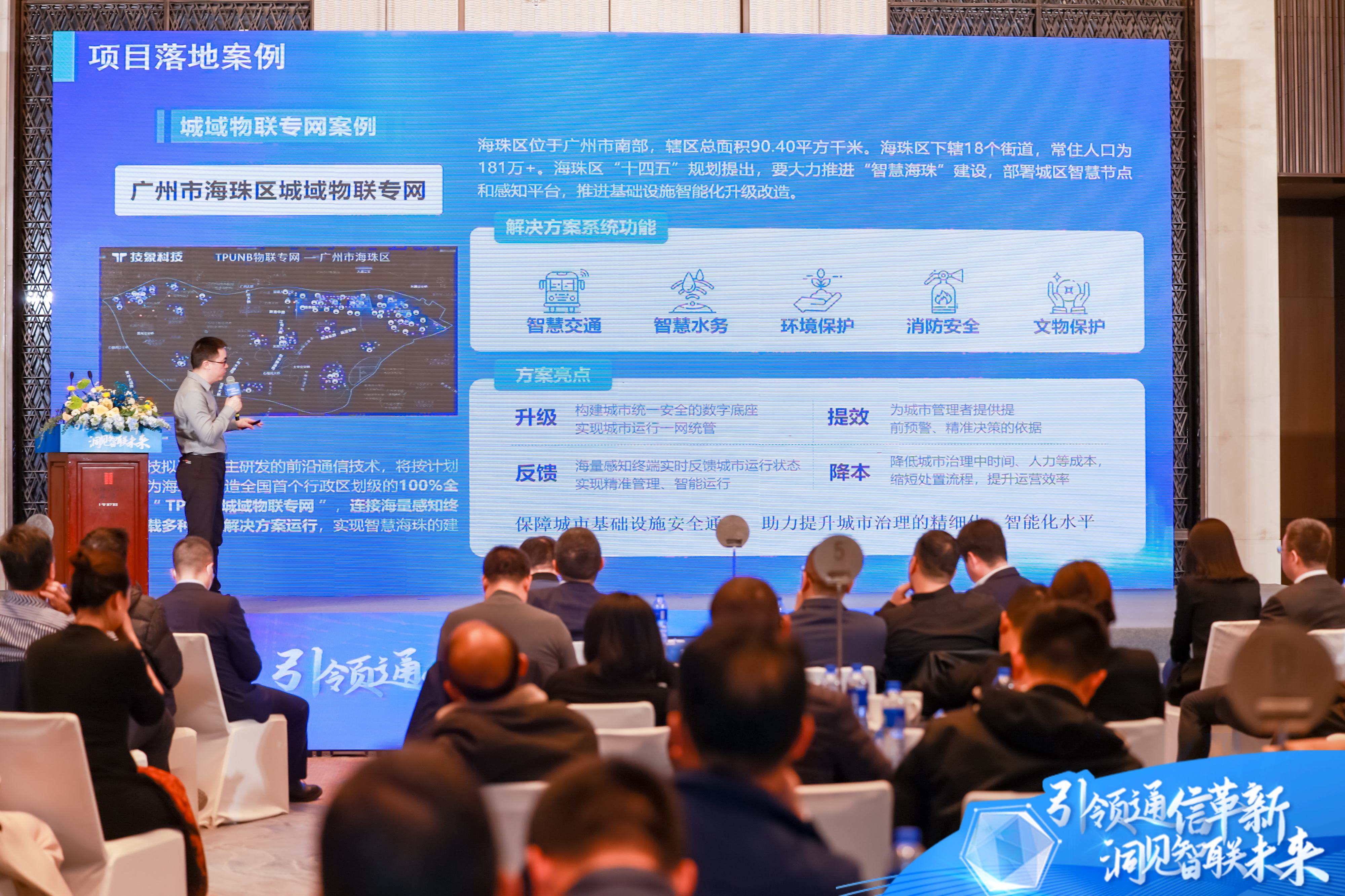 技象科技产品事业部总经理谭元华介绍了技象科技的市场战略,在基于TPUNB产品体系生态开拓的基础上,深耕政企大型项目与能源行业两大方向,为N种行业应用场景提供窄带通信的解决方案,目前已在智慧城市、智慧园区、智能电力、工业物联网等众多领域落地实践。