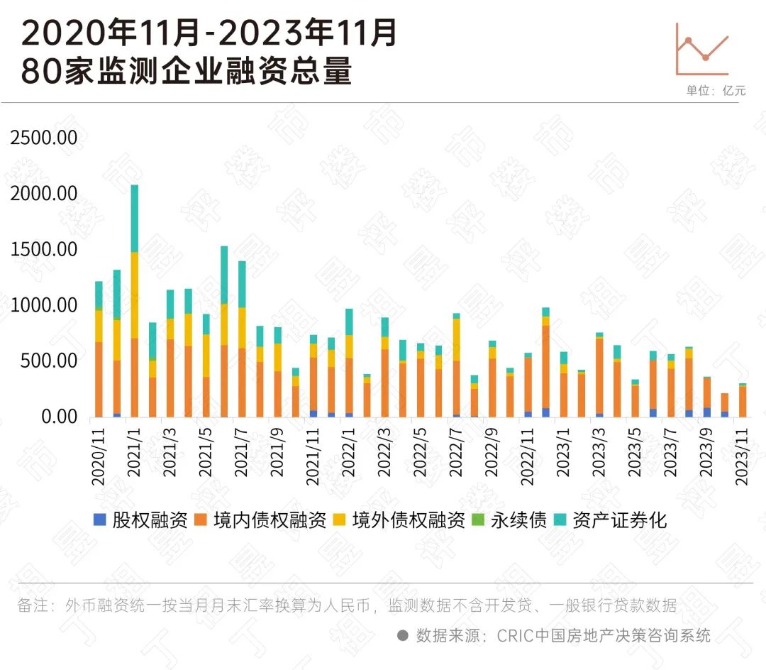 数据层面,CRIC监测的重点80家房企11月融资规模环比增加42%,企业发债环比大增264%,境外发债也迎来“破冰”。