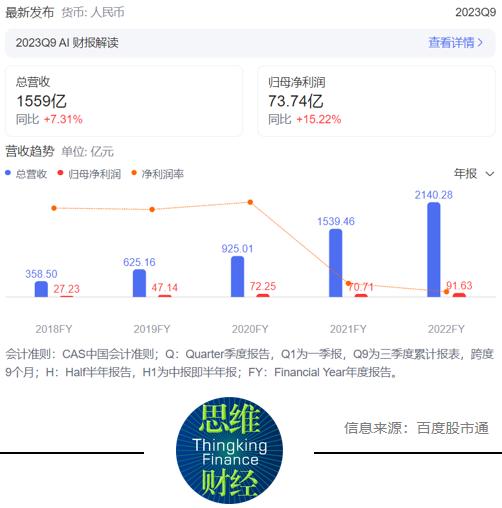 业绩方面,该公司今年前三季度营业收入1558.75亿元,同比增长7.31%;归母净利润73.74亿元,同比增长15.22%。作为对比,此前十年时间其收入同比增幅基本都在20%以上,第三季度收入同比下滑了8.51个百分点,为近十年首次。