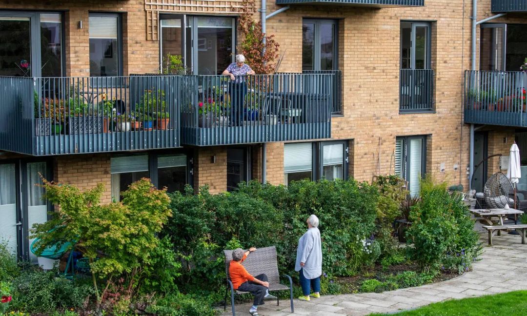 在英国伦敦,女性共居社区New Ground就是一个完全服务于女性养老的共享空间。New Ground一共有25套公寓,其中 8 套向社会开放出租,有26 名女性居民,年龄从58 岁到 94 岁不等。女性住户们被允许交男朋友,但对方最多只能待6个星期。