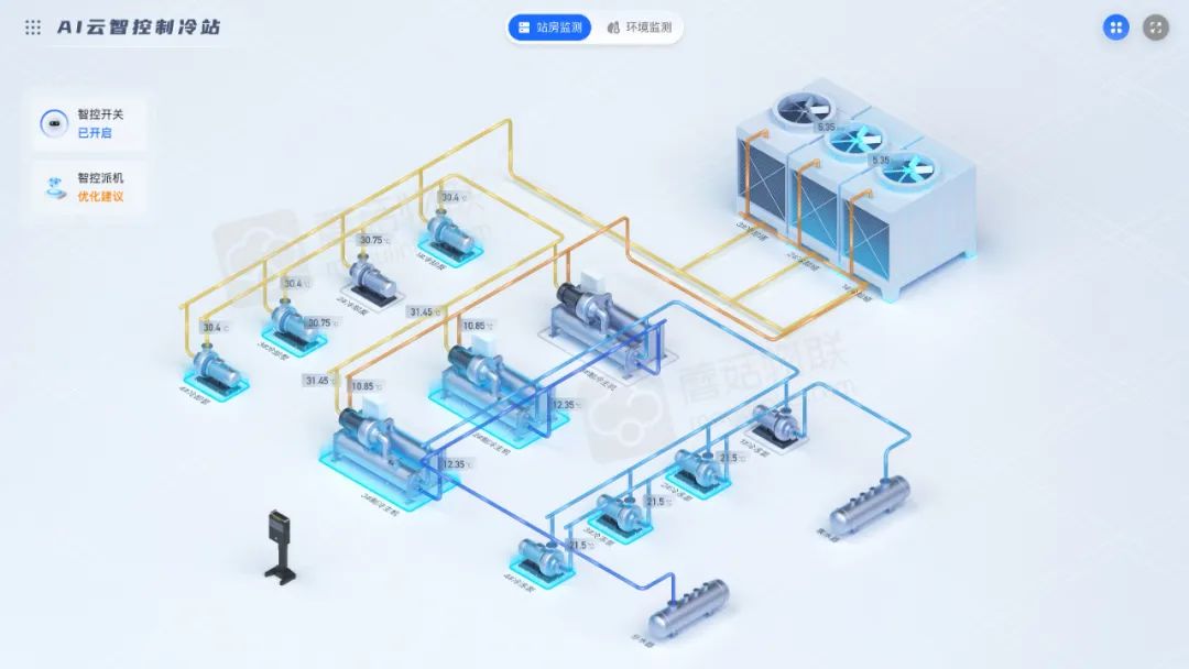 在浙江一家新能源行业的工厂里,中央空调系统构成模块多,复杂度高,容易存在多种隐性故障,带“病”运行,不仅导致中央空调系统供冷效率降低,还存在10%~20%能源浪费的痼疾,工程师多采用更换设备、加装变频器等节能常用方法,分割中央空调系统,再针对各个局部做节能改造,各自孤立控制,未能发挥系统的数据价值,节能效果有限。AI云智控上线后,利用AI算法全局寻优,从追求单台设备能耗最低,转为制冷系统整体能耗最低,基于负荷预测去控制设备智能加减载,优化设备运行组合与时长,确保冷量稳定供应,节能率高达14.45%,预计年节约中央空调系统耗电量578万度,节约碳排放1602吨。