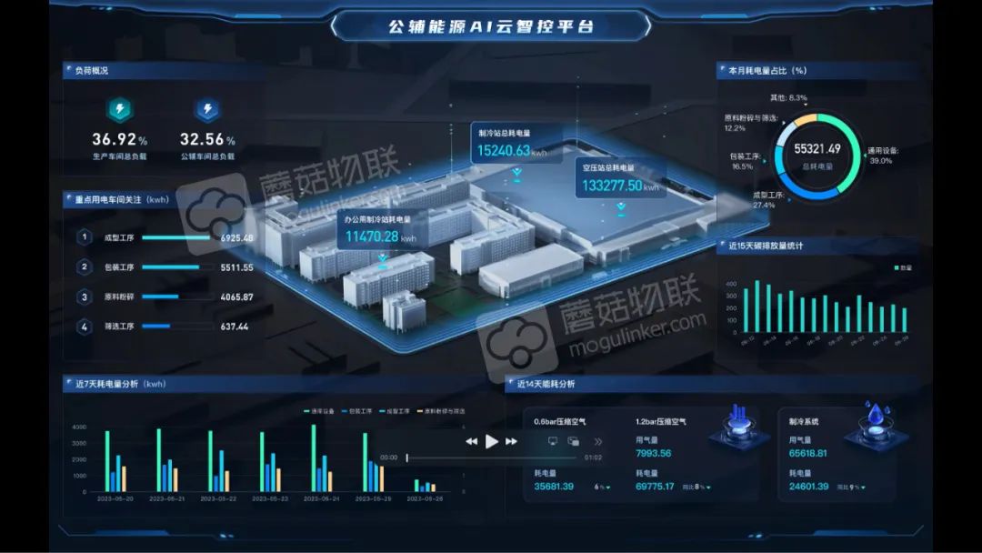 在工厂里,蘑菇物联所面对的不再是“散装”的一台台设备,而是空压机、干燥机、冷却塔等各类设备组合而成的空压站或公辅能源车间。以由制冷主机、冷却泵、冷却塔、冷冻泵、集水器、分水器末端的组合式空调柜等构成的大型制冷系统为例,仅仅是设备数据的采集很难满足客户的需求,这些高能耗设备组成的车间能耗巨大,客户最迫切的需求一是安全供能,二是节能降碳。