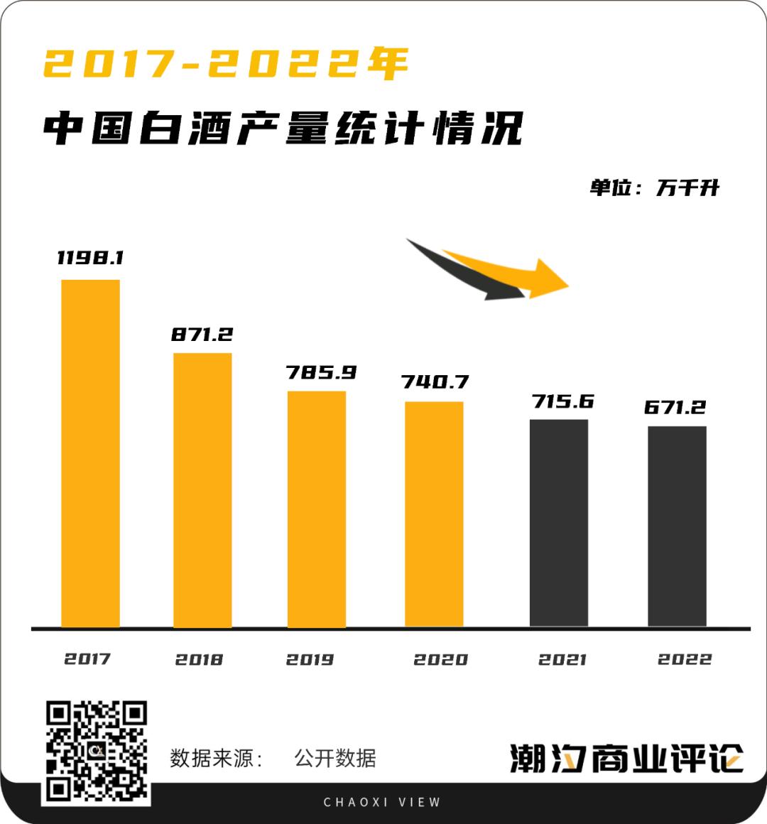 更夸张的在于长期趋势,根据公开数据显示,白酒产量自2016年以来,已经出现六连降,而今年白酒产量再次下降的可能性极大。