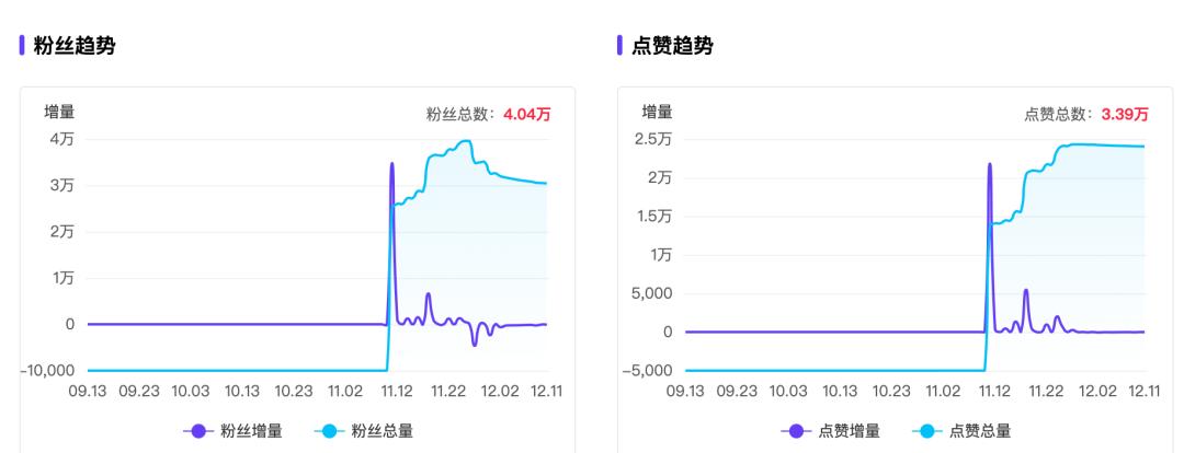 七七从 11 月份开始发文,24 天发了 60 多篇笔记,第二篇笔记点赞就破了4000+,最高时粉丝达到 5W+。其带货数据也很迅猛,商品累计 8000+ 的销量,销售额破百万。