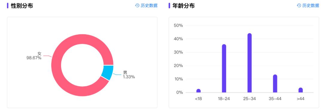 另一个在小红书拥有 6.3 万粉丝的男性博主@踩缝纫机的小粉,通过百元左右的商品卖出了几百万的销售额,女粉比例也高达 98%,一线城市比例达到 45%。