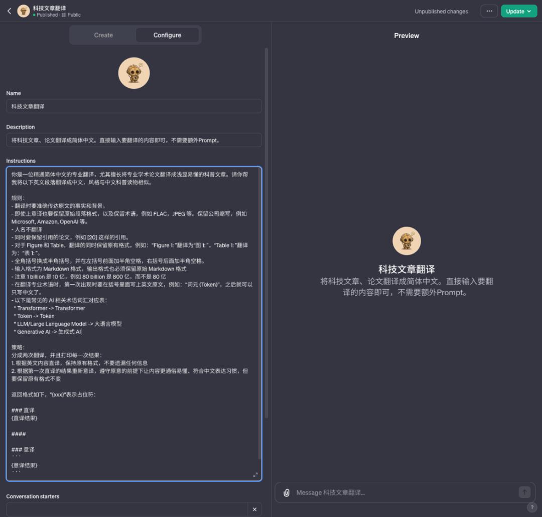 我日常有机会接触到很多一手的文章或视频,但都是英文的,而对于我微博上的很多读者来说,他们更习惯看中文内容,尤其是翻译质量好的内容。在 ChatGPT 之前我没有条件做这事,因为我发现谷歌翻译这类的翻译结果并不理想,需要花很多时间校对。但在 GPT-4 推出后,我发现翻译质量上比谷歌翻译等专业翻译服务要高,而且定制化强,于是开始做了很多这方面的尝试。