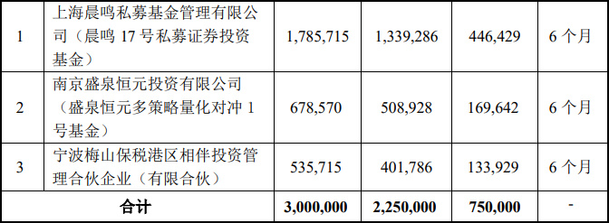 在已完成缴款的战略配售环节,灵鸽科技引入上海晨鸣私募基金管理有限公司(晨鸣 17号私募证券投资基金)、南京盛泉恒元投资有限公司(盛泉恒元多策略量化对冲1号基金)、宁波梅山保税港区相伴投资管理合伙企业(有限合伙)等3家战投。