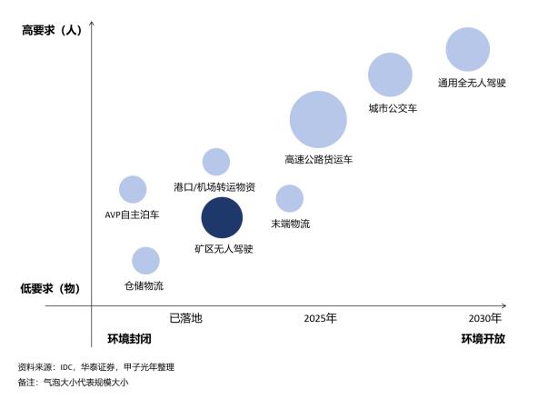 无人驾驶不同落地场景 图源:甲子光年《2023中国智能矿山行业研究报告》