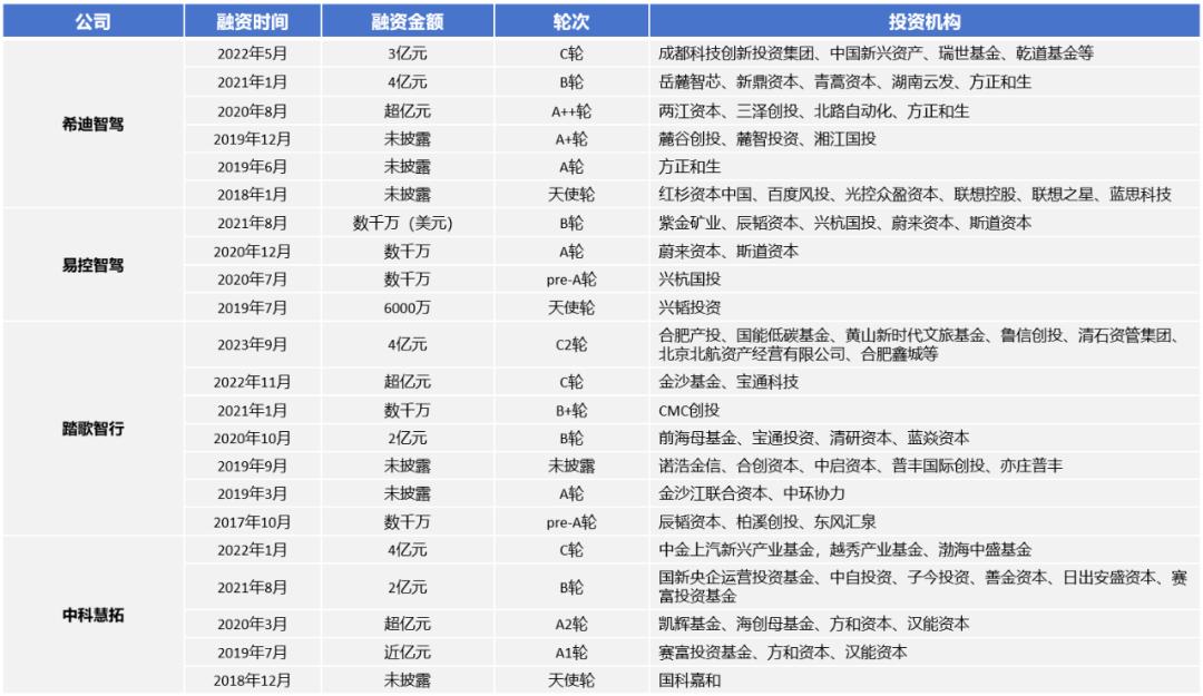 在上述四家头部企业中,中科慧拓、希迪智驾、踏歌智行三家企业融资轮次均已进入C轮,甚至C1轮,意味着企业的商业化能力和未来潜力被资本市场看好;此外,进入C轮,也意味着即将开启上市之路。
