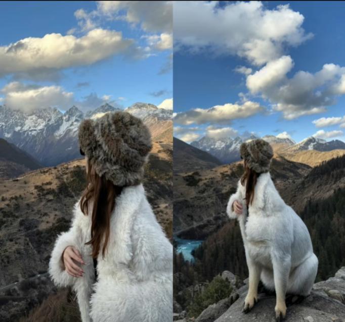 下面这张更是让人哭笑不得,你说AI智障吧,它确实让图片的色泽更清新了,但你要说AI智能吧,它愣是让人姑娘换了个物种。在此奉劝各位想要尝试AI扩图的各位,一定不要穿皮草类的毛绒外套。