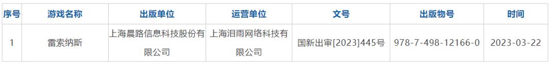 现在《雷索纳斯》的发行商已变更为「泪雨网络」。游戏的版号也登记在泪雨网络(运营单位)名下。公开信息显示,泪雨网络为游戏公国旗下独立工作室——梆硬工作室(Banging Studio)的经营主体,成立于2020年,专注硬核、二次元游戏研发。