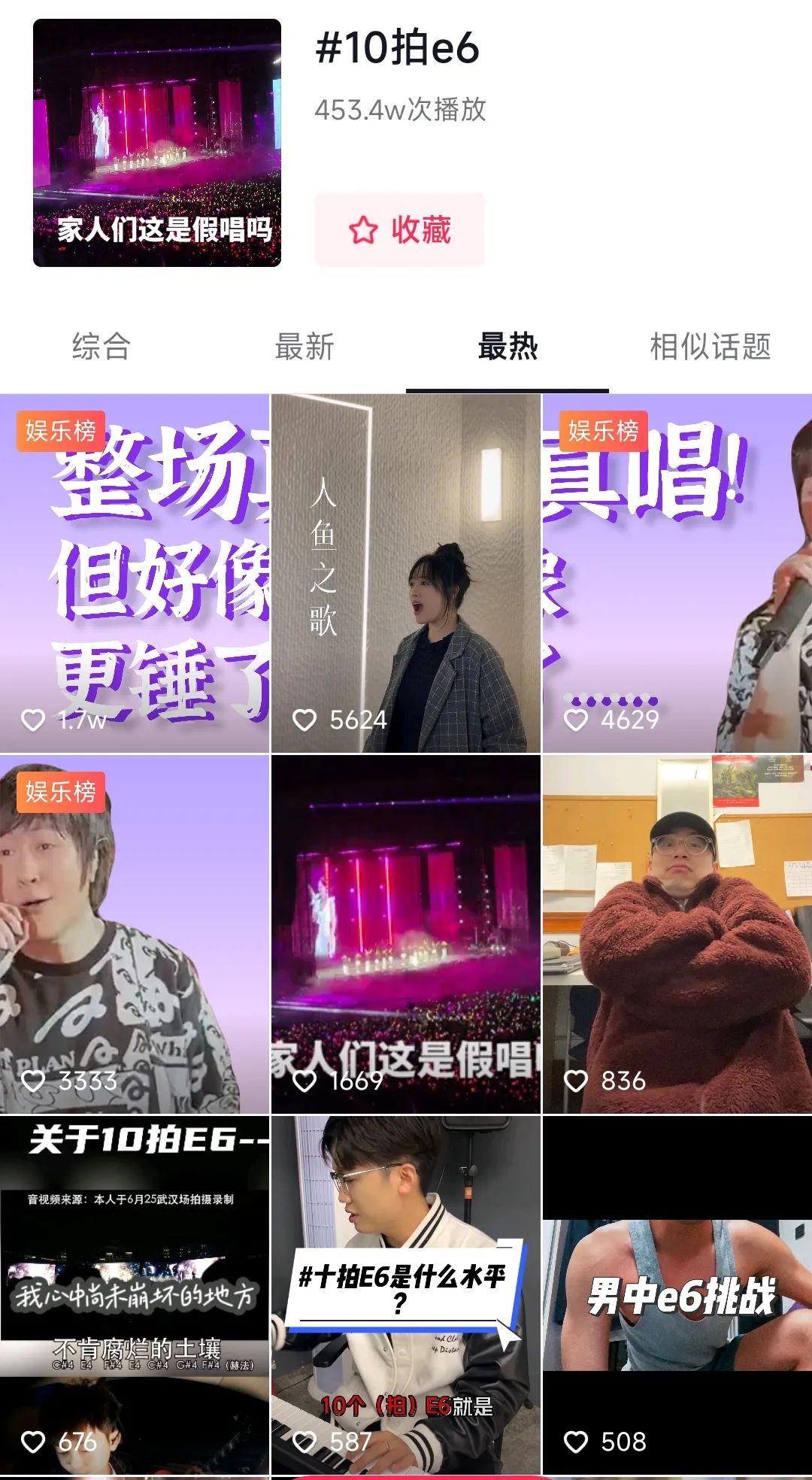 抖音#10拍e6话题,最热第二个即《人鱼之歌》