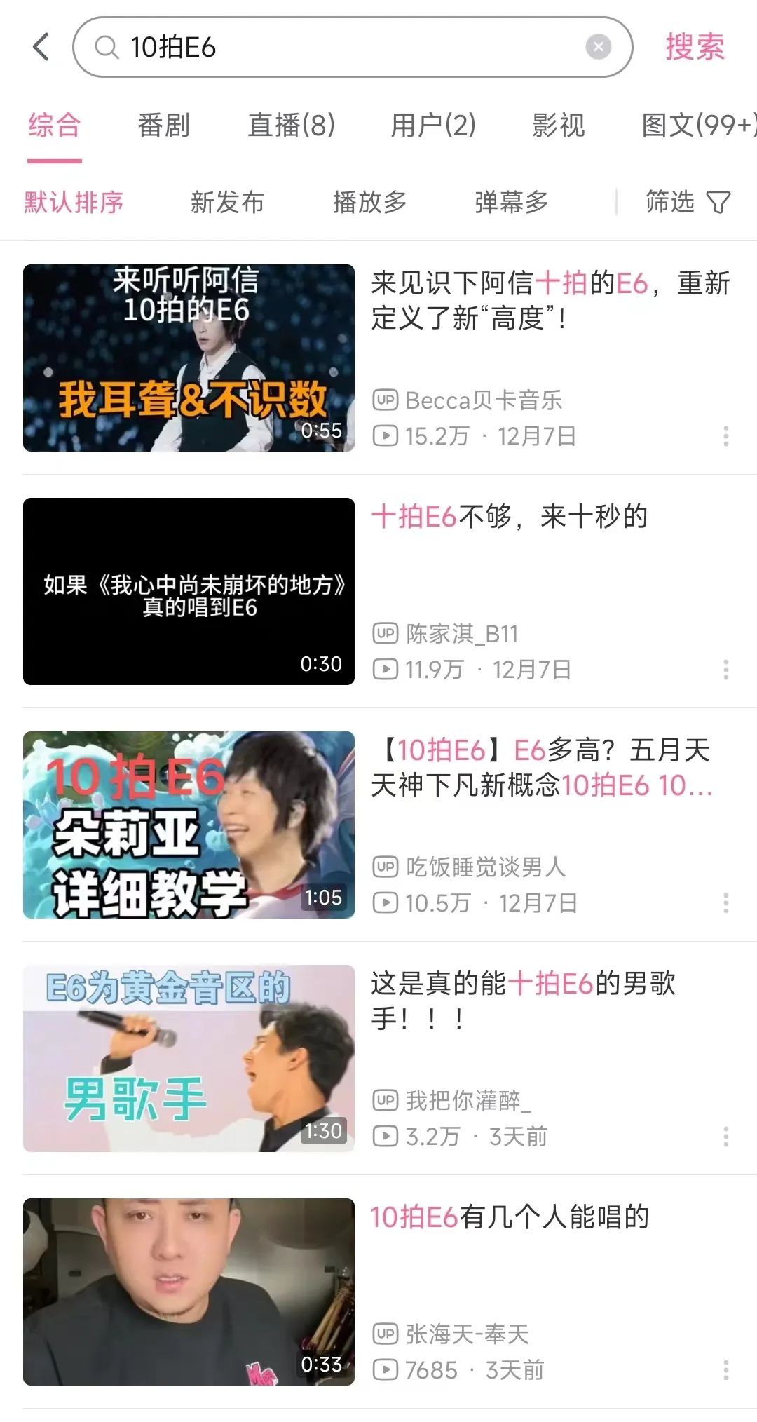 全网大量创作者吐槽阿信的“10拍E6高音”水分太大。顺带着,科普E6到底有多高的视频也不断涌现。