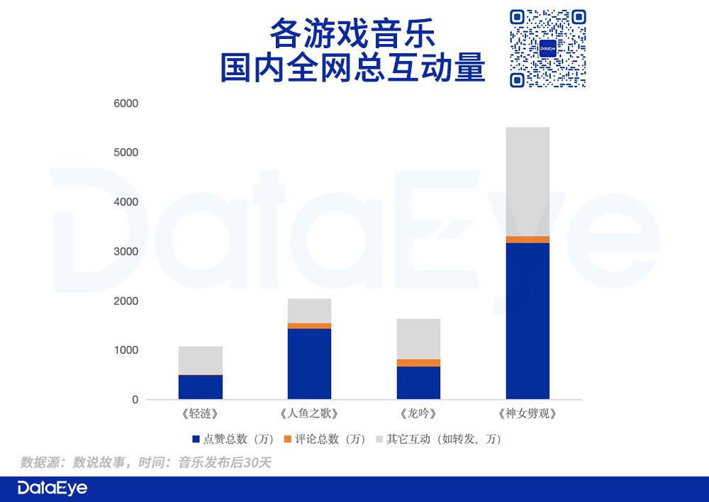 也就是说,只看国内互动量,王者荣耀的《人鱼之歌》和原神的《轻涟》,都是《神女劈观》约五分之一至三分之一的量级——这已经不低了,都是国内游戏行业现象级、出圈的顶级案例。