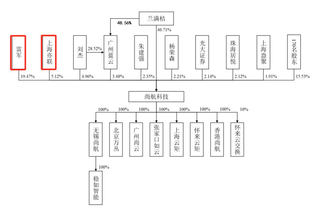 雷军是尚航科技第二大股东,但并未被认定为公司共同实控人,而是财务投资人身份,不参与经营决策。
