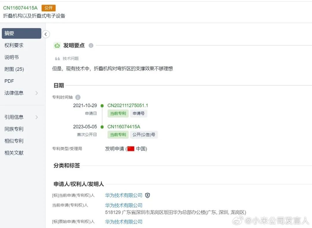 因为华为是最早拿出折叠屏方案的厂商之一,因此必然有较多的专利积累,例如 OPPO Find N 就用到了华为的铰链相关专利。