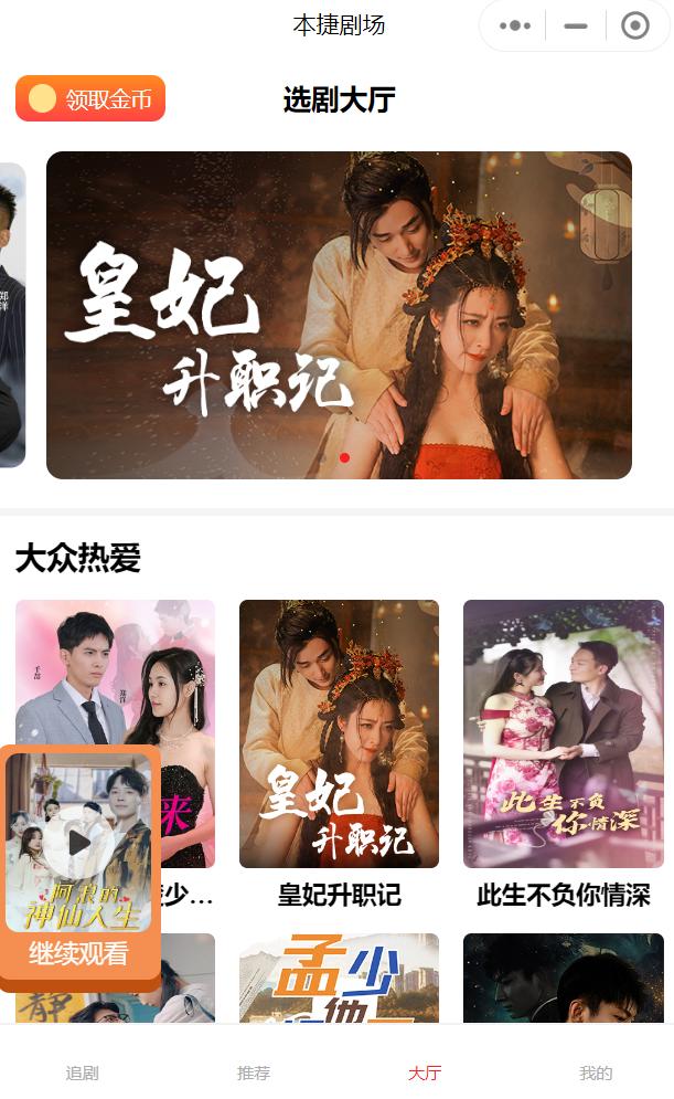 今年来,本捷网络、昶飞游戏等游戏公司纷纷将业务重心从游戏转向短剧,开始尝试短剧分销、短剧投流等业务。其中,本捷网络已经推出了“本捷剧场”小程序,上线了近20部短剧(如下图)。