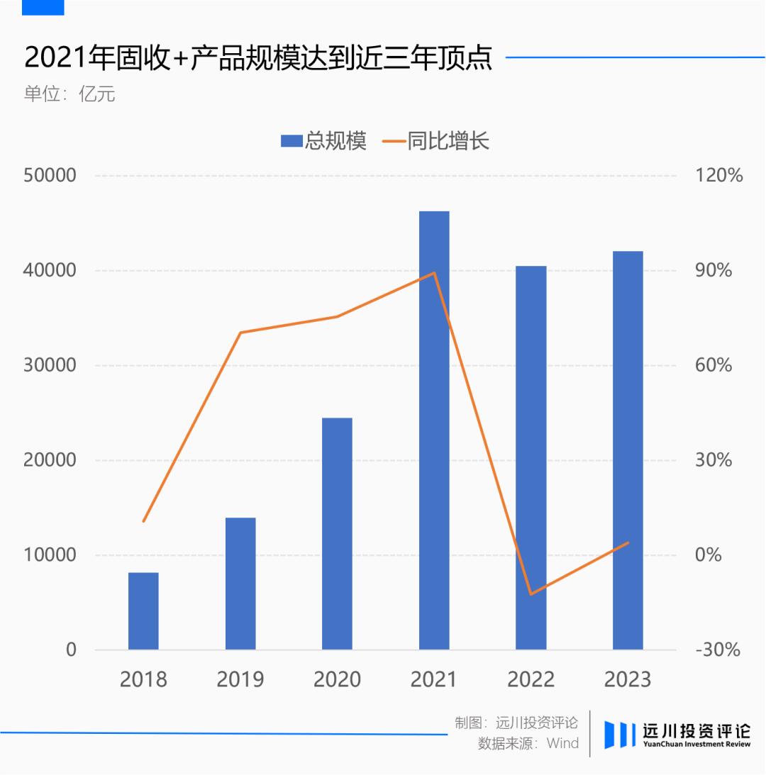 收益比理财高,波动比股票小,在市场震荡加剧的时候,没有人能够抵挡这样的诱惑,不出意料固收+迎来了规模大爆发。相关数据显示,截至2021年底固收+规模高达4.63万亿元,在2020年高基数的基础上再次增长了52.2%。