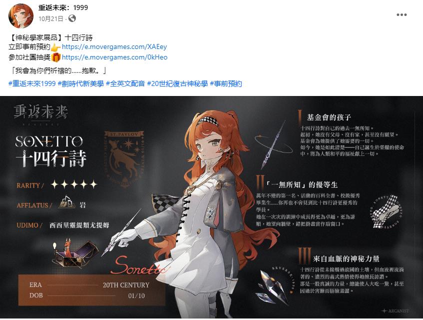 从素材投放内容来看:欧美日韩、中国港台是主要突破点,全球所有素材的核心内容均以角色为主,让玩家对游戏角色产生兴趣,其余素材不同区域跑出来的不同。这也是沿袭了《重返未来:1999》在国内的思路。