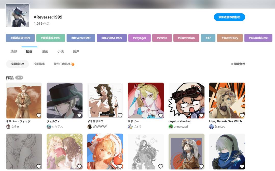 我们查找了包括pixiv、Tumblr知名同人网站的投稿数据,目前插画、漫画、小说等内容均有涉猎。