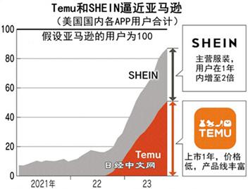 从美国用户占全球的比例来看,Temu为41%,SHEIN为18%,均超过亚马逊的15%。在细分品类上,Temu以日用生活品为主,类似于名创优品,而SHEIN则以服装为主,类似于ZARA。