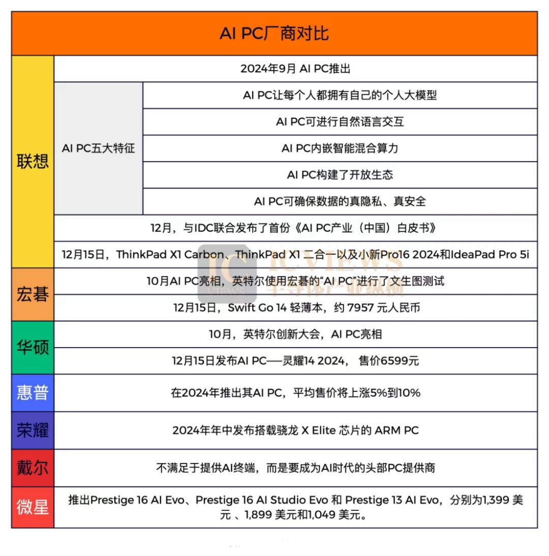 以上都是PC厂商的计划和安排,目前来看,PC厂商大多计划在2024-2025年之间,推出全新的AI PC方案。